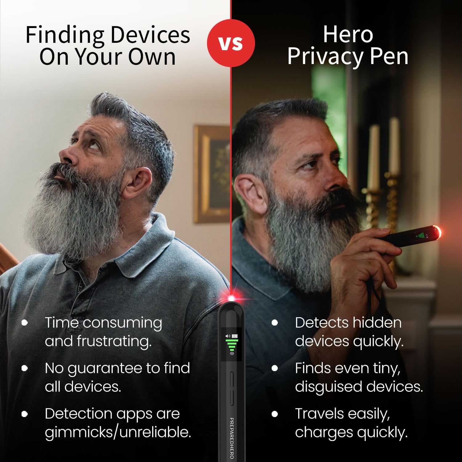Hero Privacy Pen is a simple yet powerful high-tech tool designed to uncover spying devices effortlessly.
