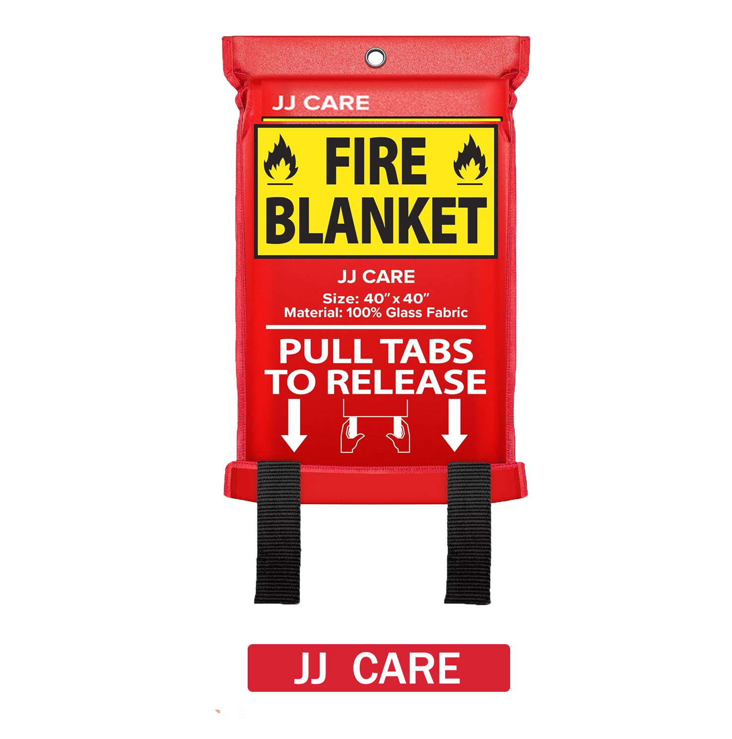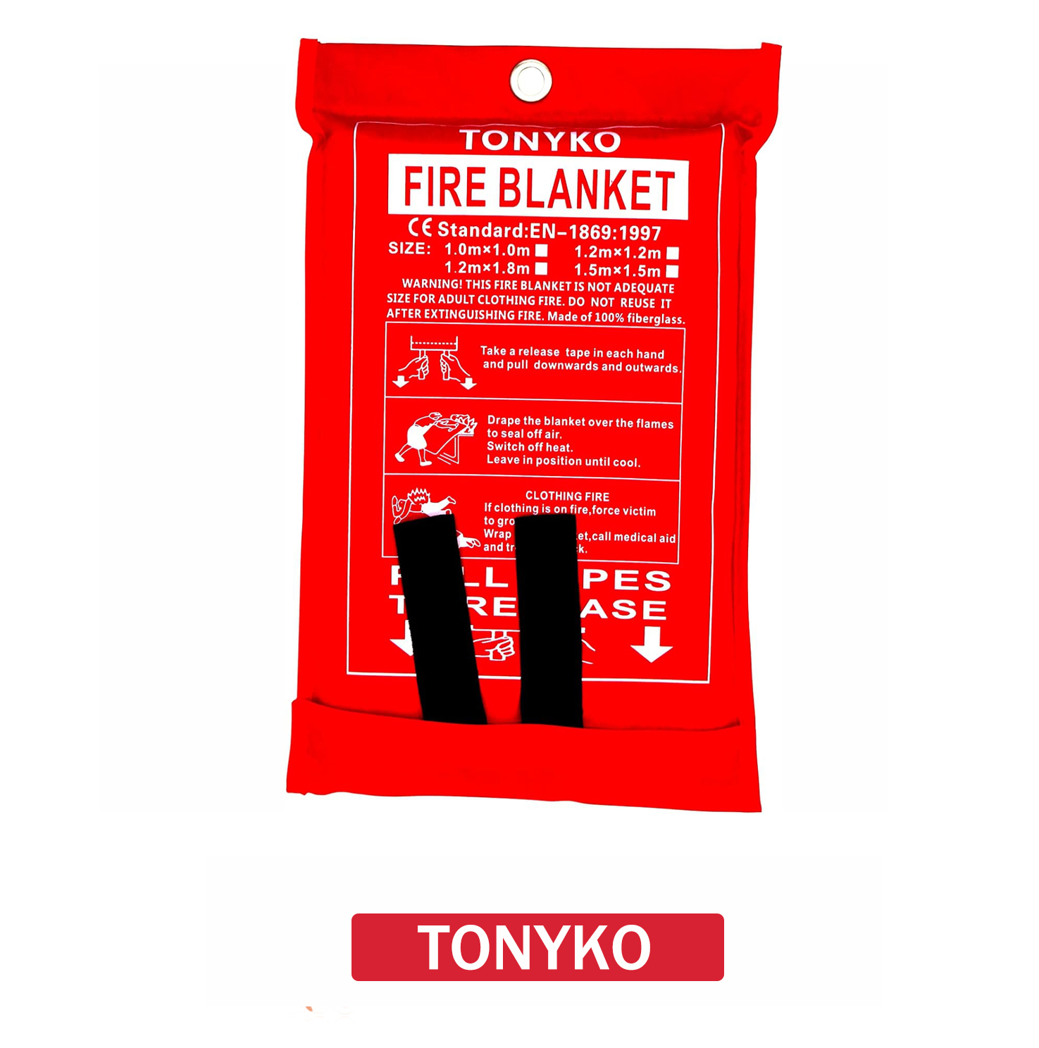 Pull the tabs to release the blanket and toss it over any small fire to instantly suffocate it.